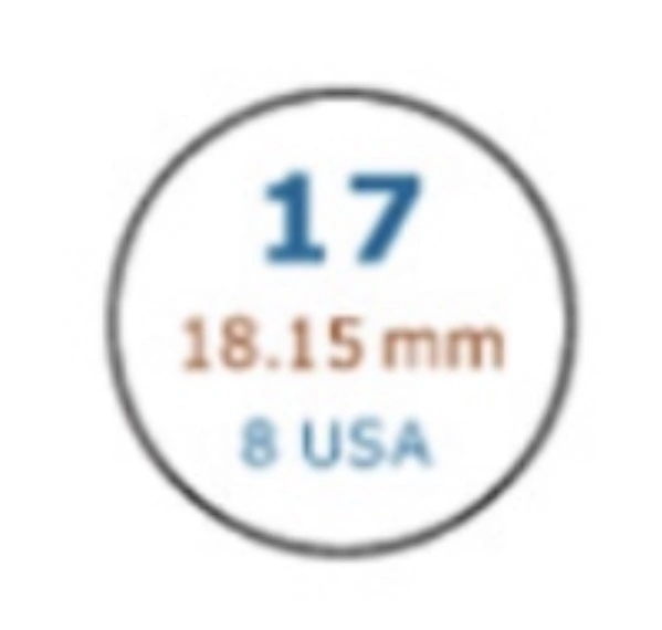 Talle 8 americano, es un talle 17 de acá. Es acero y tiene una lamina de baño dorado.