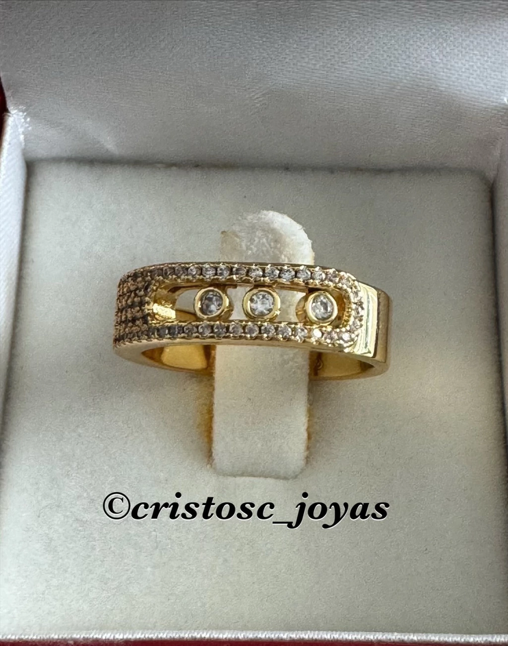 Acero con baño en oro, y dijes movibles en el centro. Cubierto en la parte delantera de strass micro pavé